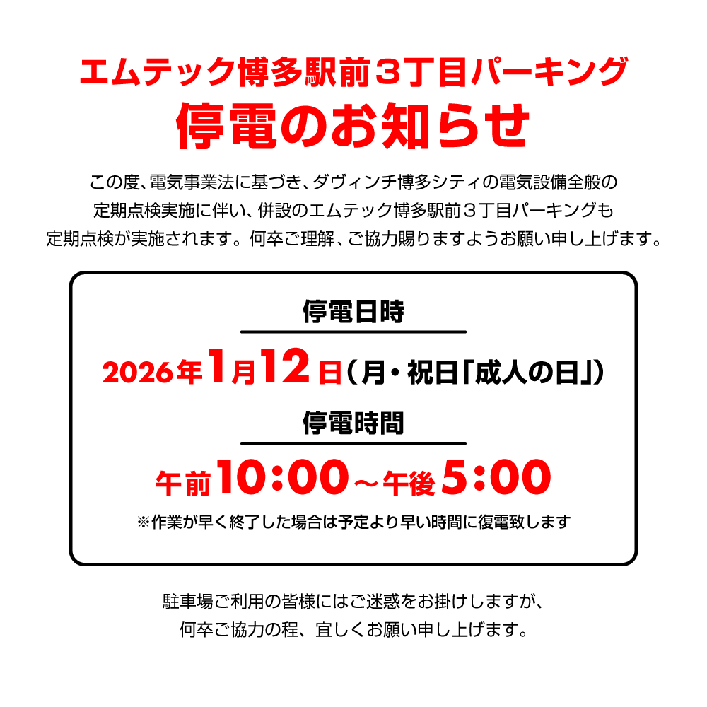 | 停電のお知らせ |